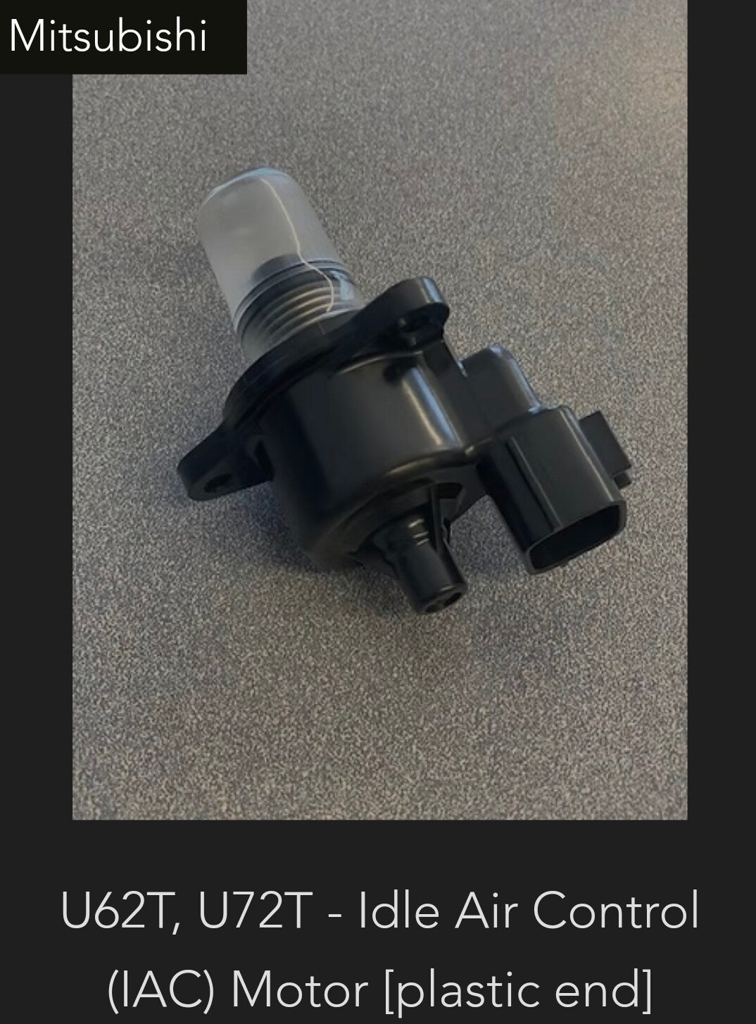 This is a Mitsubishi idle air control for U62T'S and U72T'S (Short plastic end)