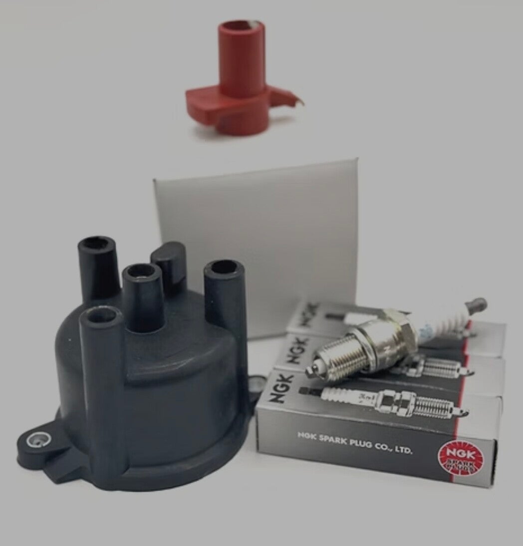 Kit Includes: (1) Distributor Cap(ID #A-1OR B-2), (1) Distributor Rotor, (1) Set of Spark Plugs